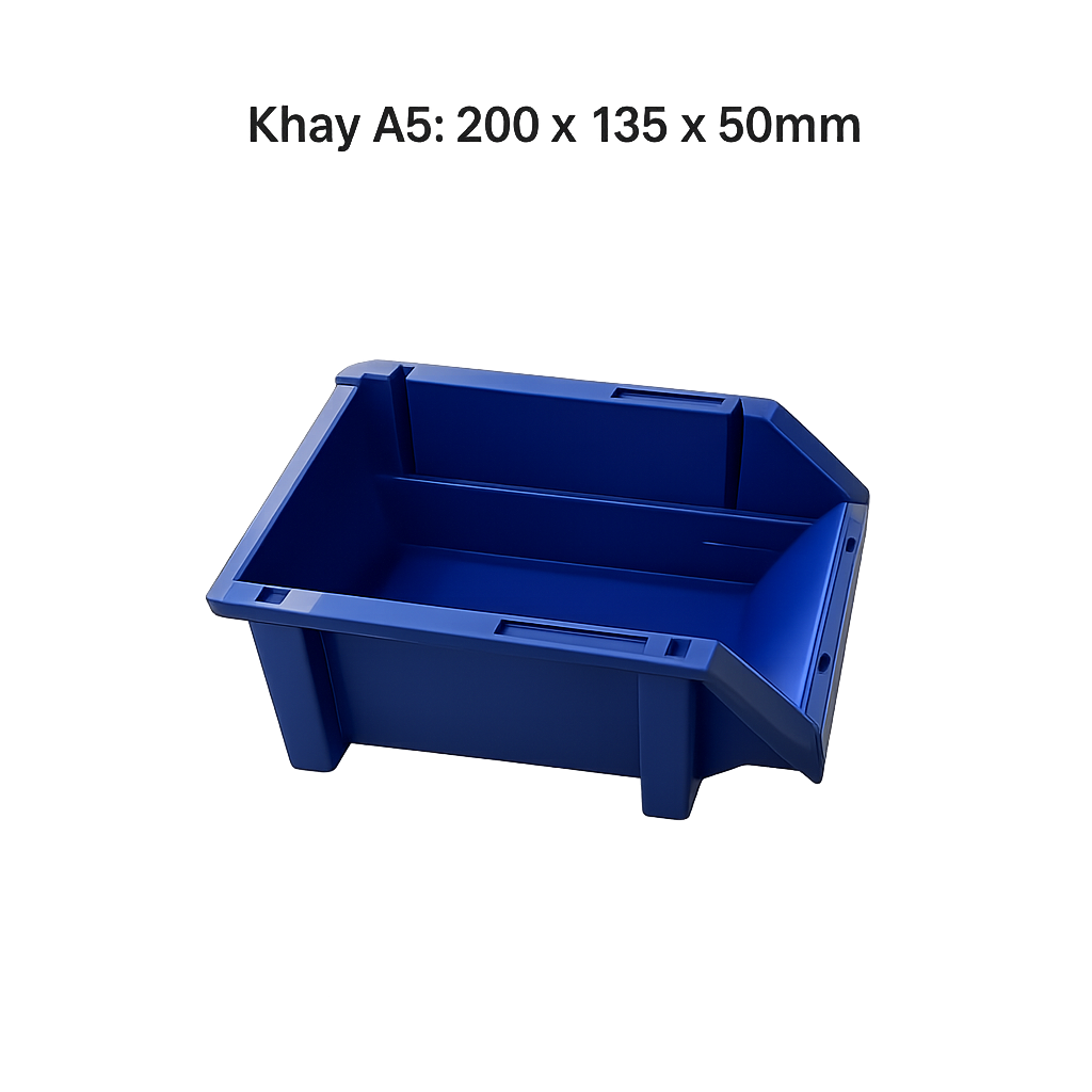Khay nhựa A5 là sản phẩm chuyên dụng dùng để đựng linh kiện điện tử, ốc vít kim khí, thiết bị điện nước, phụ tùng xe máy – ô tô và chi tiết cơ khí, giúp doanh nghiệp sắp xếp khoa học – quản lý dễ dàng – nâng cao hiệu suất làm việc.