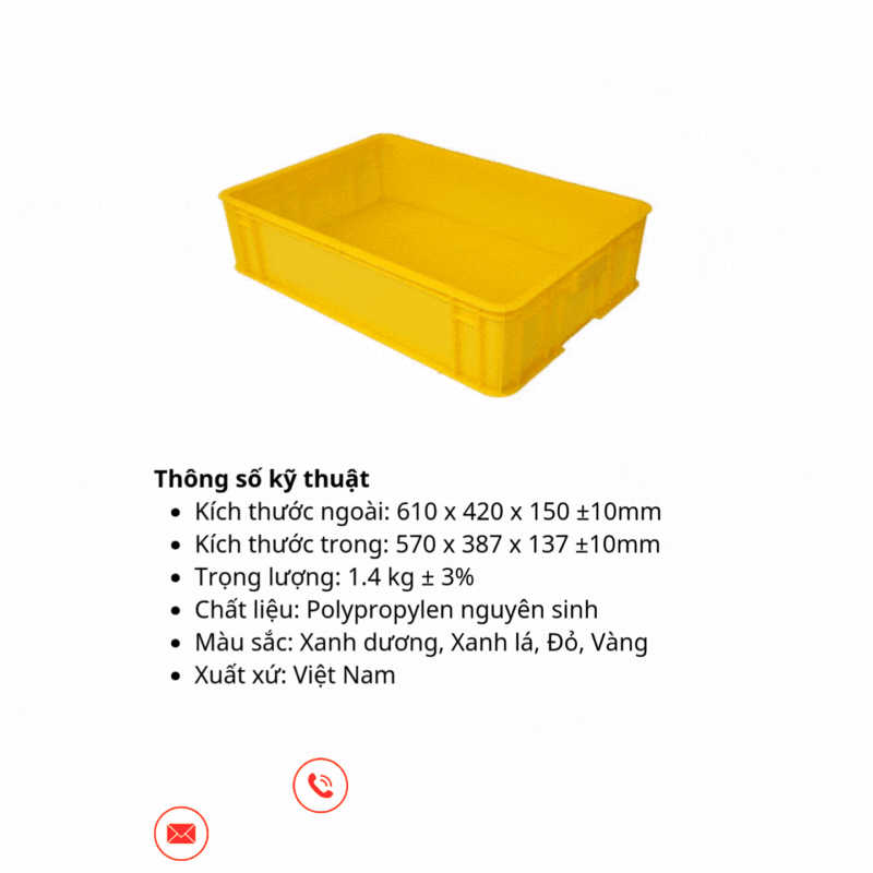Sản xuất từ nhựa PP nguyên sinh trên dây chuyền công nghệ Nhật Bản, thùng có độ bền cao, chịu lực tốt, phù hợp chứa hàng hóa và linh kiện có tải trọng lớn.