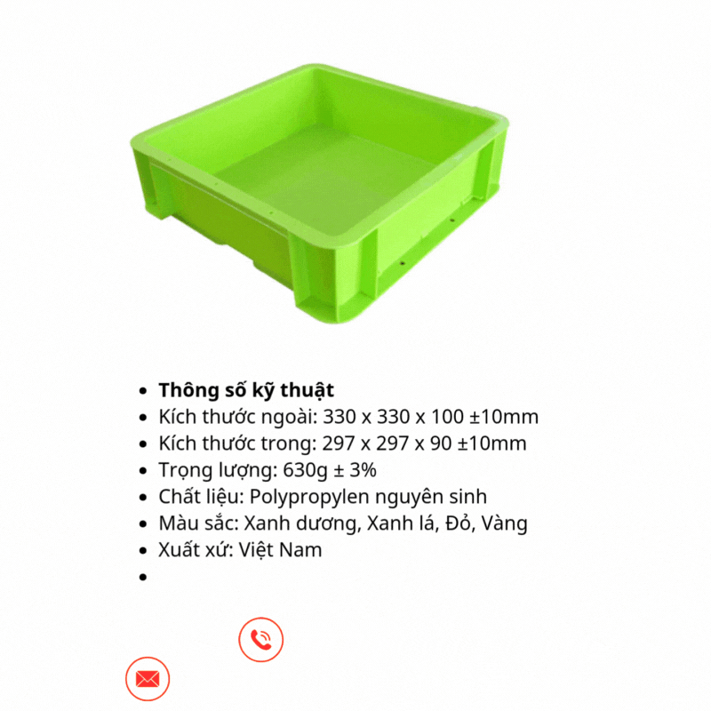 Sản xuất từ nhựa PP nguyên sinh trên dây chuyền công nghệ Nhật Bản, thùng có độ bền cao, chịu lực tốt, phù hợp chứa hàng hóa và linh kiện có tải trọng lớn.