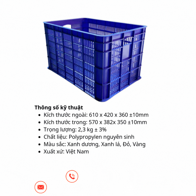Kết cấu đan lưới nhiều lớp giúp thùng thoáng khí, thoát nước tốt, đồng thời hạn chế ẩm mốc, rất phù hợp với hàng hóa tươi sống hoặc nông sản.